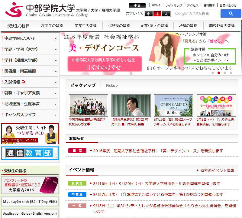 学校情報 中部学院大学 中部学院大学 X Facebook はてブ Pocket LINE コピー 2015.08.04 中部学院大学 【求人情報】 ・中部学院大学 事務職員(新卒) 2015年8月21日締め切り