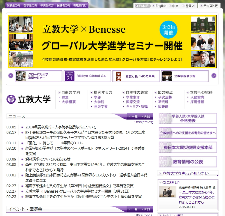 立教学院の学内(学院本部、大学の教務部・学生部等)における事務全般。