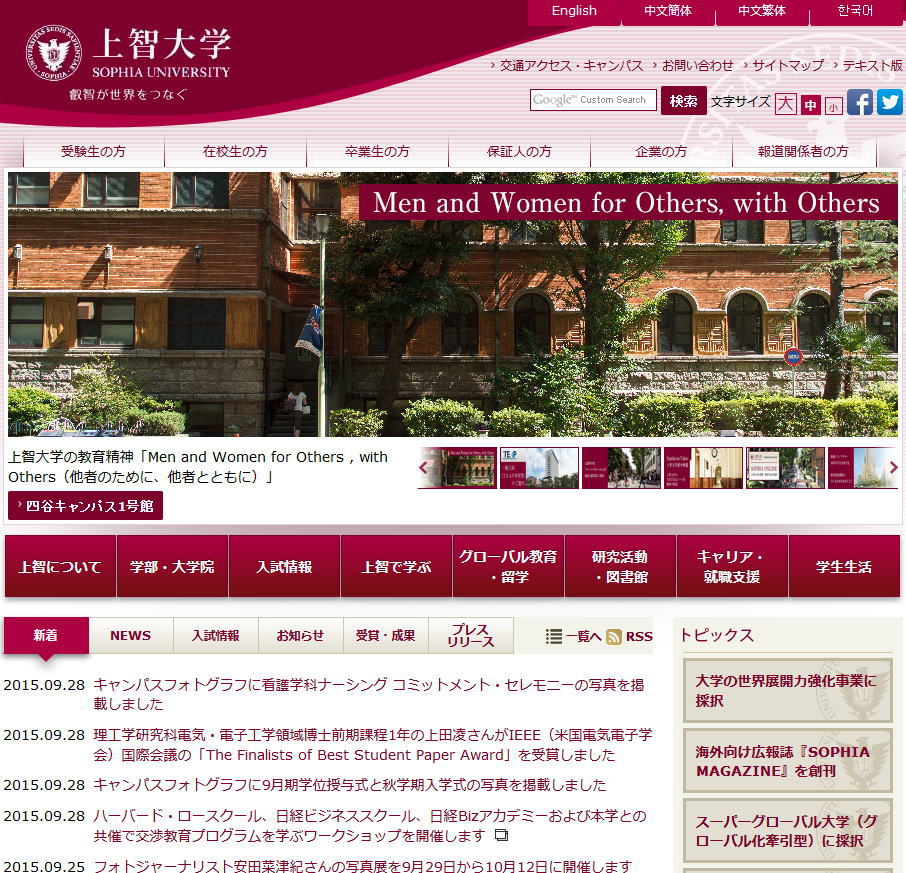 - 専任教員184名、専任職員137名 (2015年5月1日)