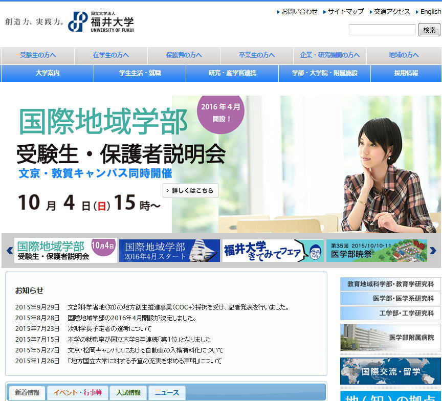 ▲地域の「知の拠点」福井大学。全国の国立大学から大きな注目を浴びています。