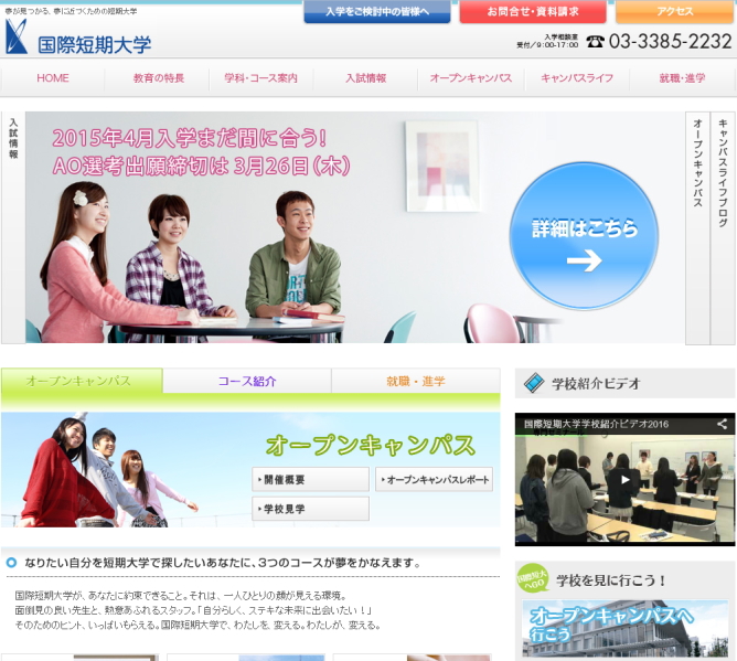 学校情報 国際短期大学 国際短期大学 X Facebook はてブ Pocket LINE コピー 2015.03.19 国際短期大学 【求人情報】 ・国際短期大学 経理事務スタッフ 2015年10月6日締め切り ・国際短期大学 学生募集営業スタッフ 2015年9月22日締め切り ・国際短期大学 学生募集営業スタッフ 2015年8月4日締め切り ・国際短期大学 短大事務スタッフ 2015年5月5日締め切り ・国際短期大学 教務事務スタッフ(英語業務を含む) 2015年3月31日
